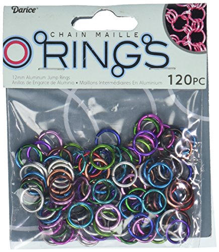 Assorted color Chain Maille aluminum jump rings. 12mm each. Use these jump rings from delicate and light to dark and rebellious projects. Chain Maille jewelry possibilities are endless! 120 pieces per package.