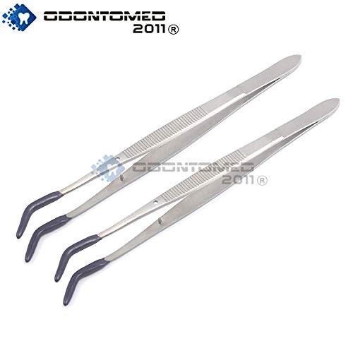 Pack Of 2 Tweezers Bent Tip Tweezers With Rubber Tips Pvc Coated Jewelry Hobby Crafts ToolsMade In High Quality Stainless Steel OdontoMed2011 Instruments.