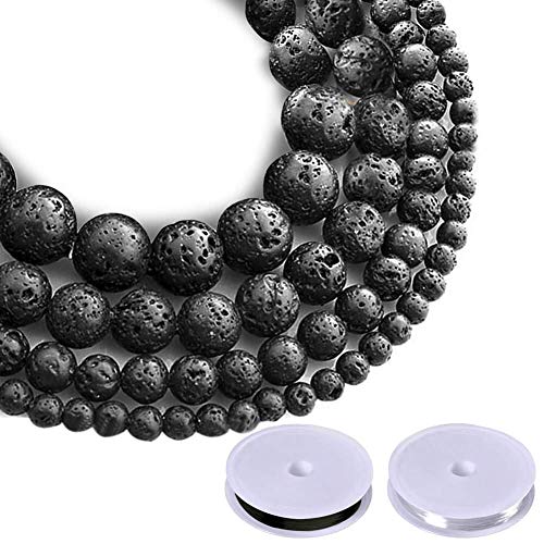 - QUANTITY INCLUDES - Paxcoo lava beads set come with totally 500pcs 4 different size lava rock beads per package (4mm-150pcs, 6mm-150pcs, 8mm-150pcs, 10mm-50pcs) and 2 rolls of black and white elastic string for your jewelry making and beading supplies