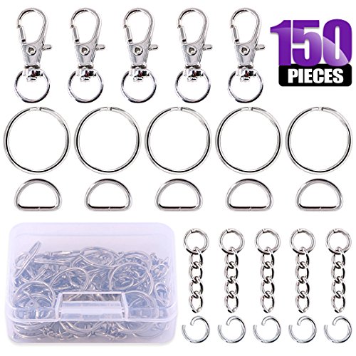 - ☛ 4, WHAT YOU GET --- This package comes with 30pcs key chain hooks, 30pcs Keychain rings, 30pcs D ring and 30pcs extender chain with 30 pcs open jump rings. Totally 150 pieces. You get This package in low price with this special offer. It is enough quantity to do your small DIY designs.
