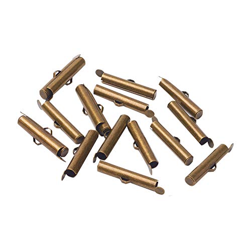 Brass Slide On End Clasp Tubes, Slider End Caps, Antique Bronze