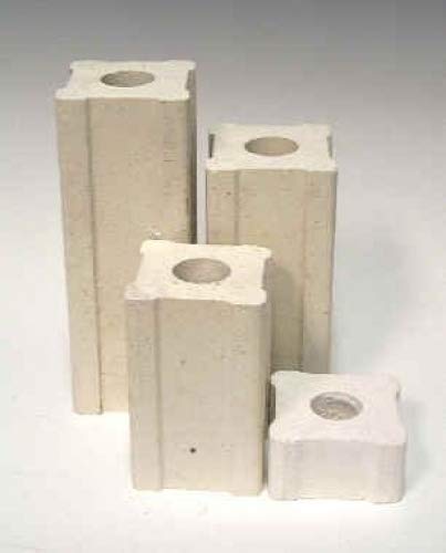 Set of 4 kiln posts, allows flexibility and ventilation throughout kilns. Use kiln posts with drop molds, to elevate slumping molds preventing entrapped air, to vent heat by propping the kiln lid open, or to elevate kiln shelves off the floor of the kiln.