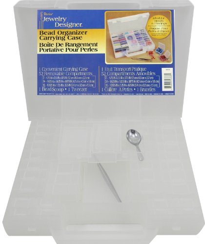 - Darice Jewelry Desinger Bead Organizer Carrying Case with Handle. This convenient Case Keeps Supplies Organized & Handy! Contains 52 Removable Compartments. Bonus includes 1 Bead Scoop and 1 Tweezer. Ideal for Beads & Findings. Removable Compartments include: 2-4.75 in x 2.5 in x .875 in 34-1.625 in x 1.625 in x .6875 in 16-1.3125 in x 1.25 in x .625 in.