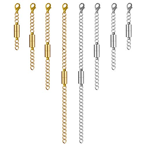 - Package includes: 8 pcs magnetic necklace extenders in gold and silver color. 2 pcs for each sizes: 6"-4"-3"-2" (5 cm /7.5 cm /10 cm /15 cm).