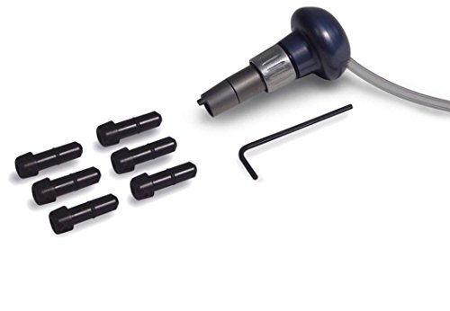 This is the lightweight GRS Monarch handpiece, made from heat treated stainless steel. Used primarly for ultra-fine engraving and banknote styles, this lightweight handpiece only weighs 1.8 oz. (52 grams), about 1/3rd the weight of the Magnum handpiece. This handpiece is not recommened for stone setting, as the Monarch's lightweight will not stand up to the rigors of such work. In any event, jewelers do find this light handpiece an important part of their GRS toolbox, especially while doing delicate work. Requires a compatible GRS engraving system using oil-free compressed air. Compatible GRS systems include the GraverMach AT, GraverMax G8, GraverMach, GraverMax SC, GraverSmith, and Classic GraverMax / GraverMate machines. This handpiece is not Airtact ready and is not compatible with the GraverMeister machine.