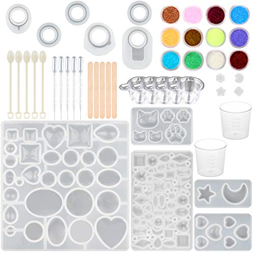 - What You Get: 15 x jewelry casting molds, 5 x wooden sticks, 5 x plastic spoons, 5 x plastic droppers, 4 x cups, 1 x glitter powder sequins